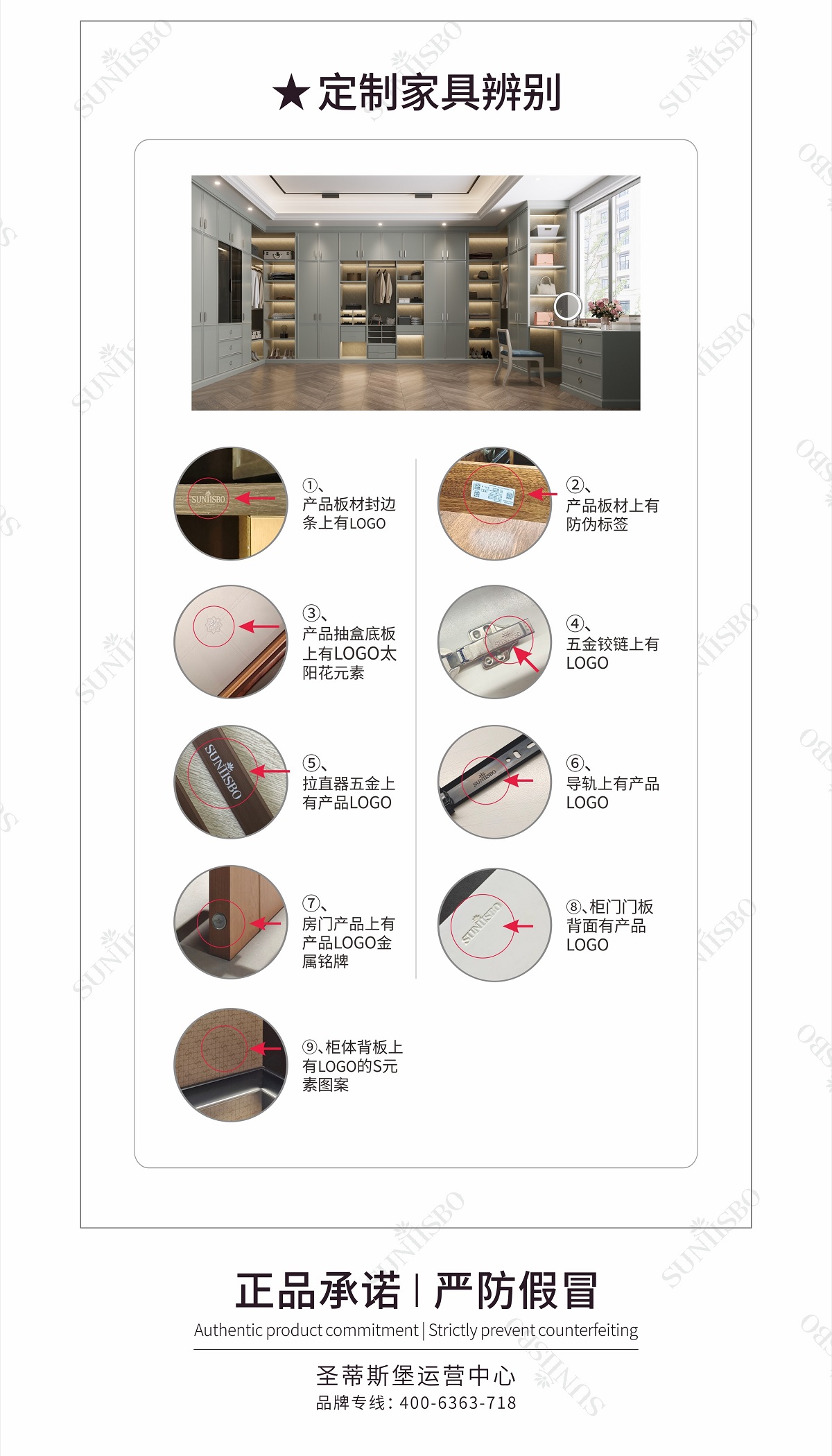 ①、产品板材封边条上有LOGO